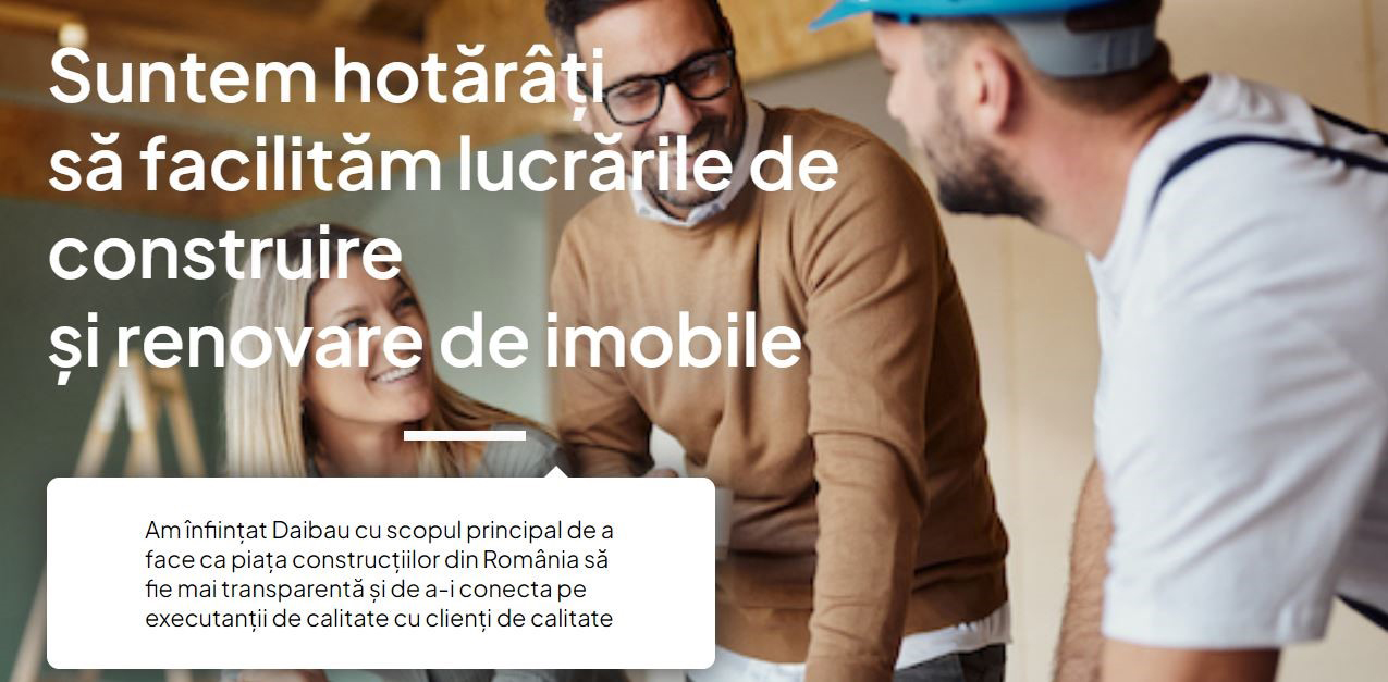 Daibau.ro oferă adevărata digitalizare a pieței construcțiilor, simplificând contactarea firmelor din acest domeniu în România. Pe platforma Daibau sunt deja activi peste 17.000 de executanți, disponibili pentru utilizatori.